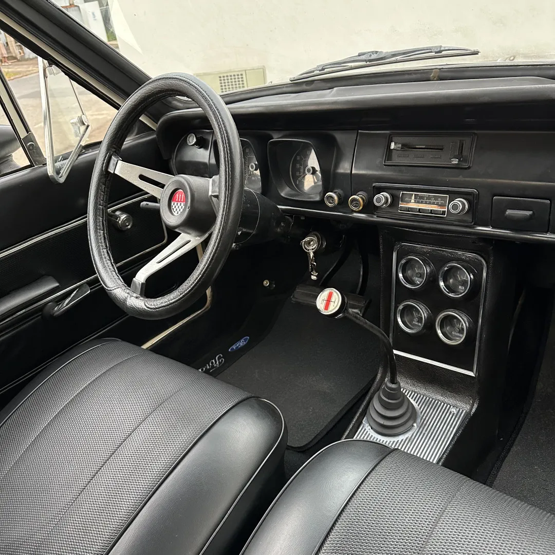 - Parte interna excelente e completa com toda a instrumentação GT, com estofamento no padrão original, volante Walrod original do GT e o raro e cobiçado console do GT com 4 mostradores no lugar e funcionando, além da manopla de câmbio do GT;