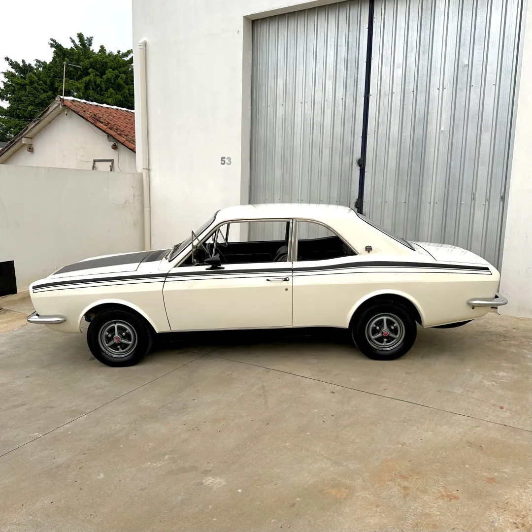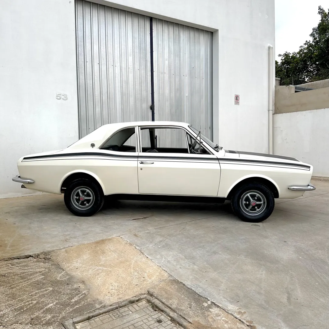 Liso, lacrado e alinhado, com uma pintura nova de alto padrão na cor original Branco Nevasca e faixas respeitando o padrão original do GT 1976 pintadas, como era o original. Não é adesivo.